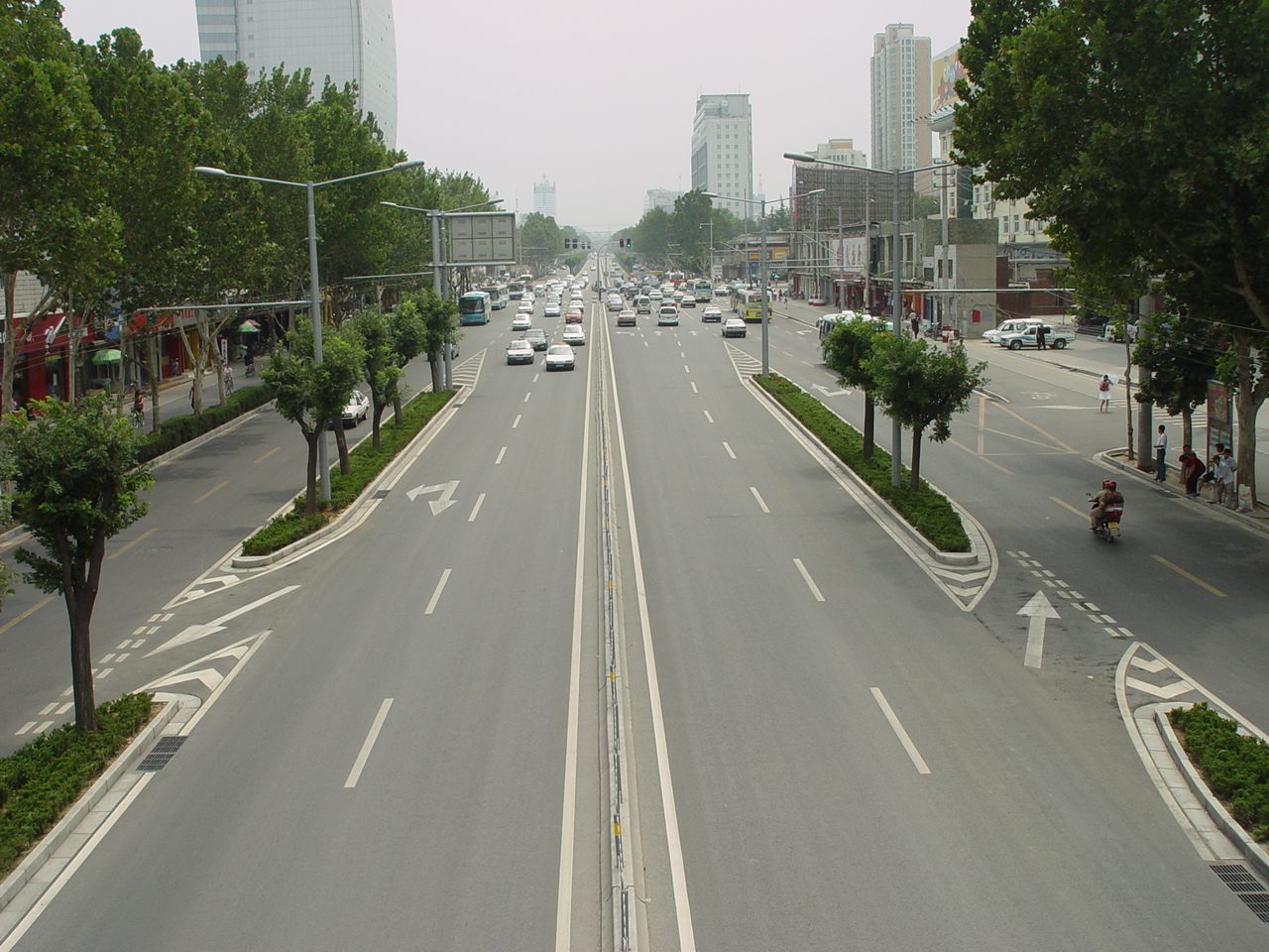 解放路地處濟南市中心,兩側人口密度大、商鋪林立、交通流量大,是一條城市主干道,青龍橋路口、解放路口、山大路口等幾個大路口是整個濟南市的交通樞紐。該工程西起青龍橋,東至二環東路,全長3550米,道路紅線歷山路以西45米,歷山路以東50米,兩側為7.5米寬公交專用車道,自行車和人行道一體化設計。解放路工程于2005年5月25日正式封閉施工,僅用一個月的時間就實現了快車道的通車任務,創造了濟南市政道路工程的一個奇跡。2005年9月18日,由建設部組成的專家組對解放路工程的橋梁和道路工程檢查后給出了“建設程序完備、施工資料齊全、工程質量優良”的評價。2005年10月解放路全面通車,確保了全國糖酒博覽會的順利召開。